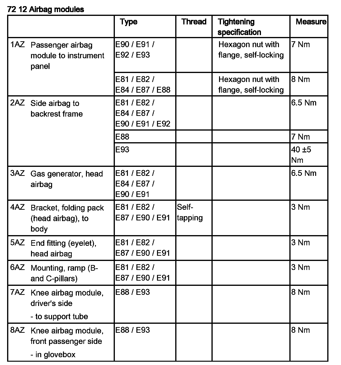 72 12 Airbag Modules