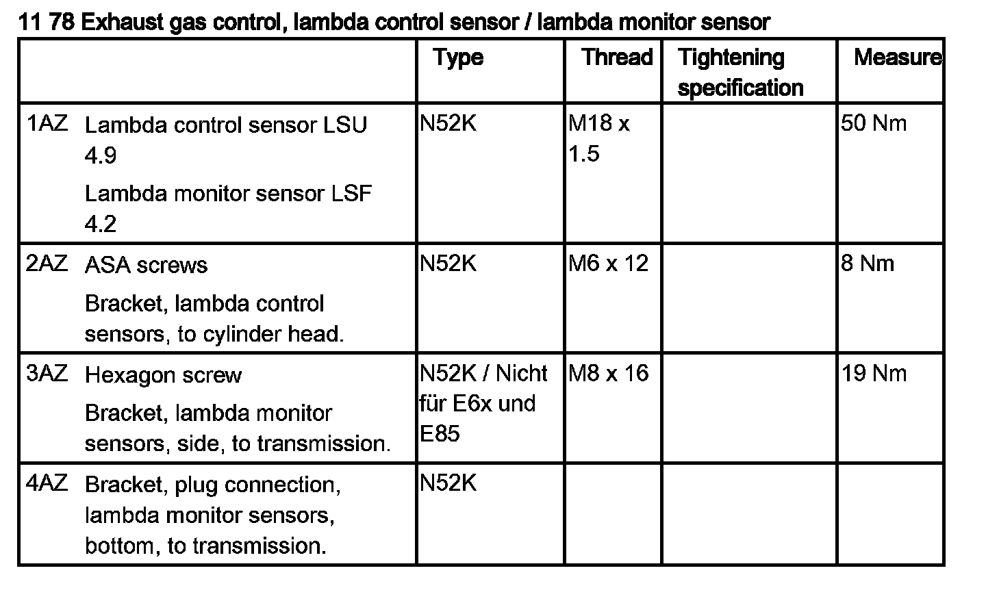 11 78 Exhaust Gas Control, Lambda Control Sensor / Lambda Monitor Sensor