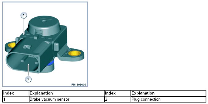 The brake booster is equipped with a vacuum sensor to help ensure that adequate brake-application force will remain available under all conditions. The brake vacuum sensor is located next to the brake booster, to which it is connected by a separate line.