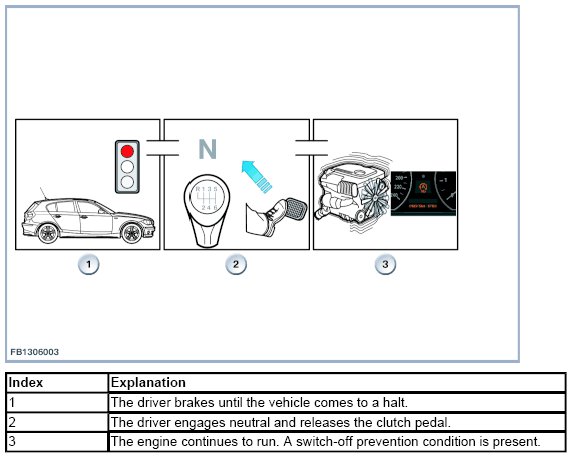 Sample scenario: The engine is switched off while the vehicle is stationary at a red light and when it comes to a halt in stop-and-go traffic.