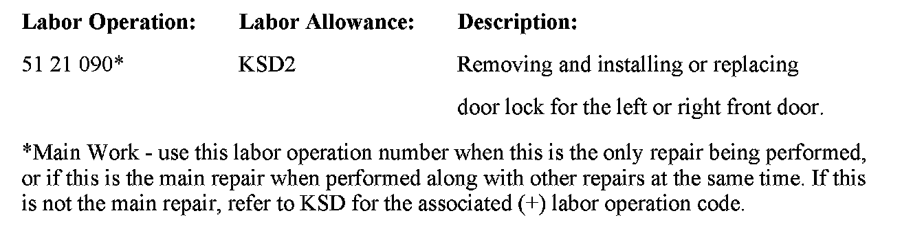 The flat rate unit allowance for the door lock replacement (51 21 090 and 51 21 590) has been revised to reflect the updated repair procedure.