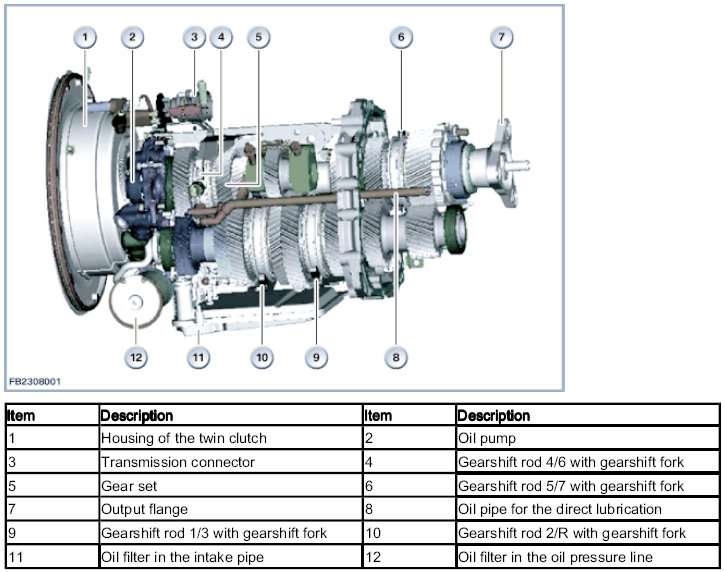 The twin-clutch transmission essentially consists of the following components: