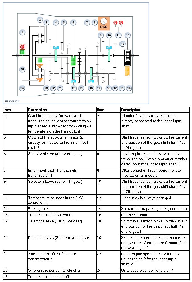 The following control units and components are involved in the function of the twin-clutch transmission (in alphabetical order):