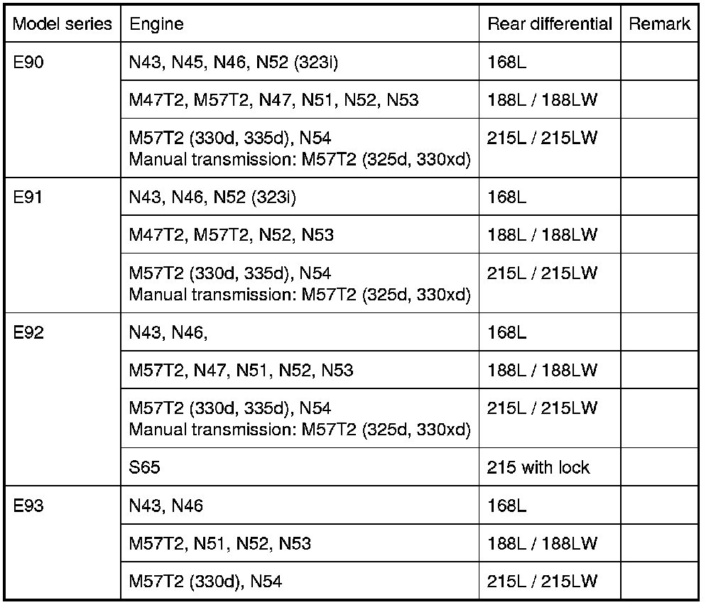 33 10 ... - Rear differential: Assignment to model series