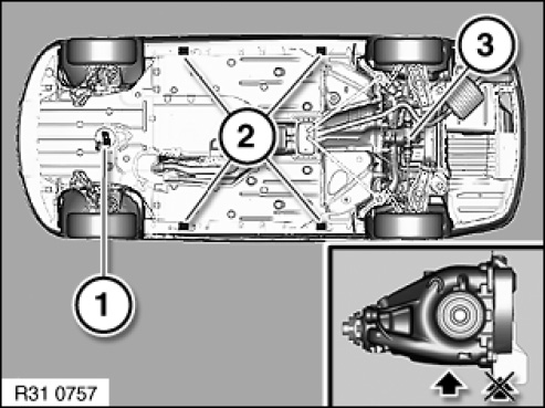 NOTE: It is not permitted to raise the vehicle at the rear differential cover.
