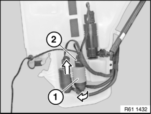 - Before replacing the windscreen washer pump, check the fluid reservoir for dirt contamination and clean if necessary.