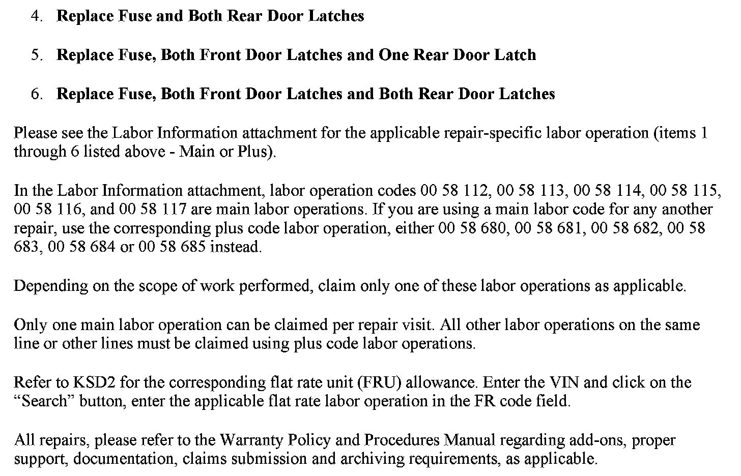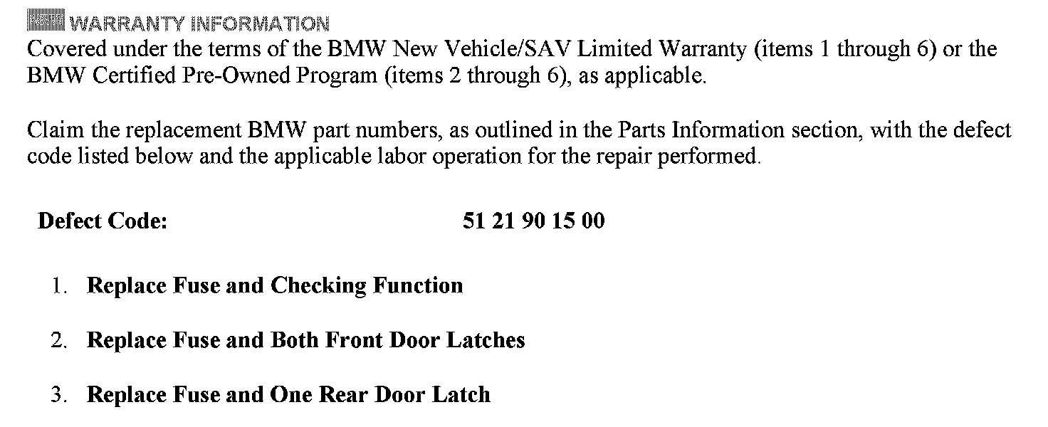 ^ If either one of the rear door lock actuators is determined to be the source of the blown fuse, only that single faulty latch should be replaced per Repair Instruction REP 51 22 090.