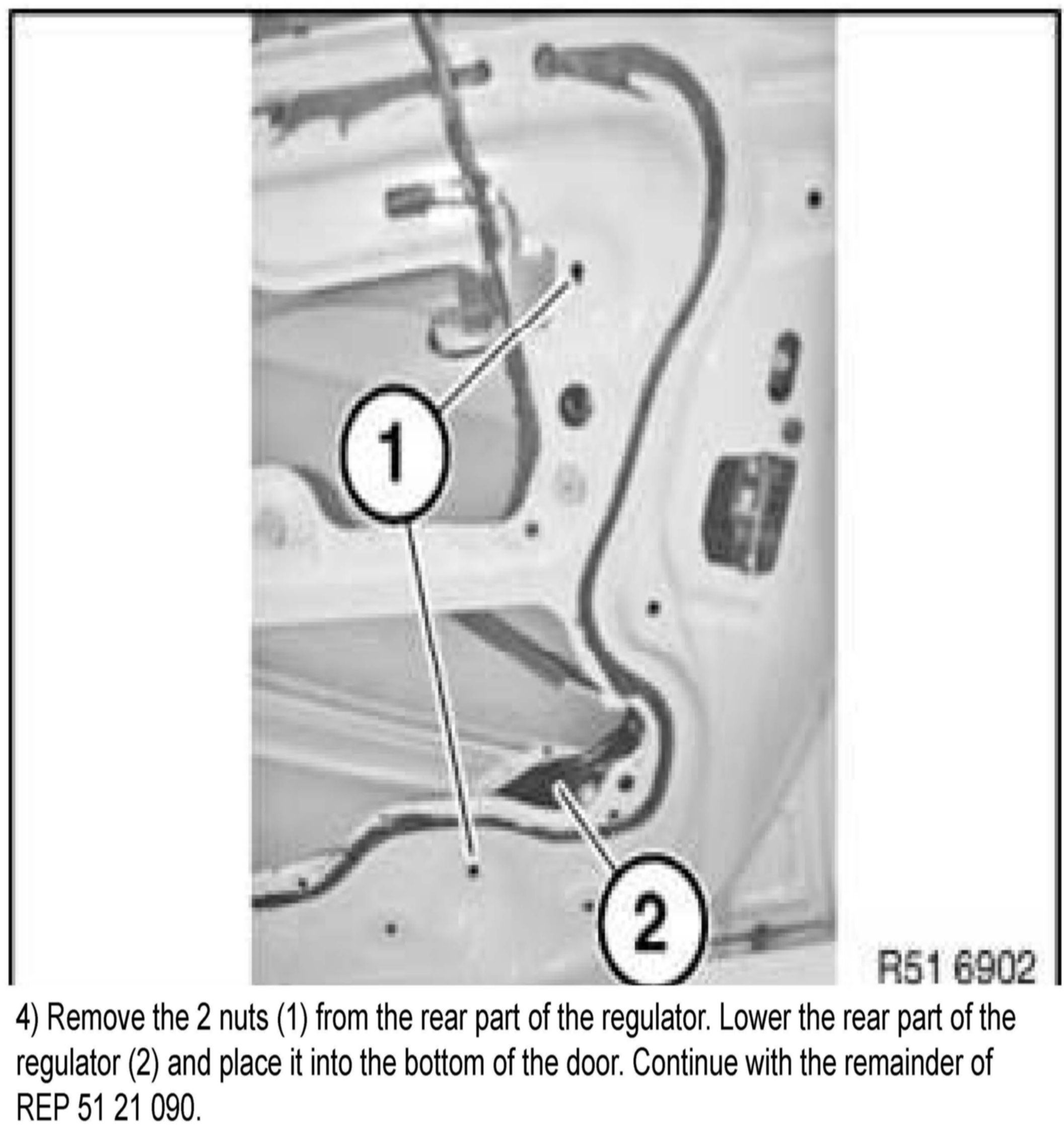 ^ If one of the front lock actuators and one of the rear lock actuators appears to be faulty, both front latches and the single faulty rear latch should be replaced per Repair Instruction REP 51 21 090 and REP 51 22 90.