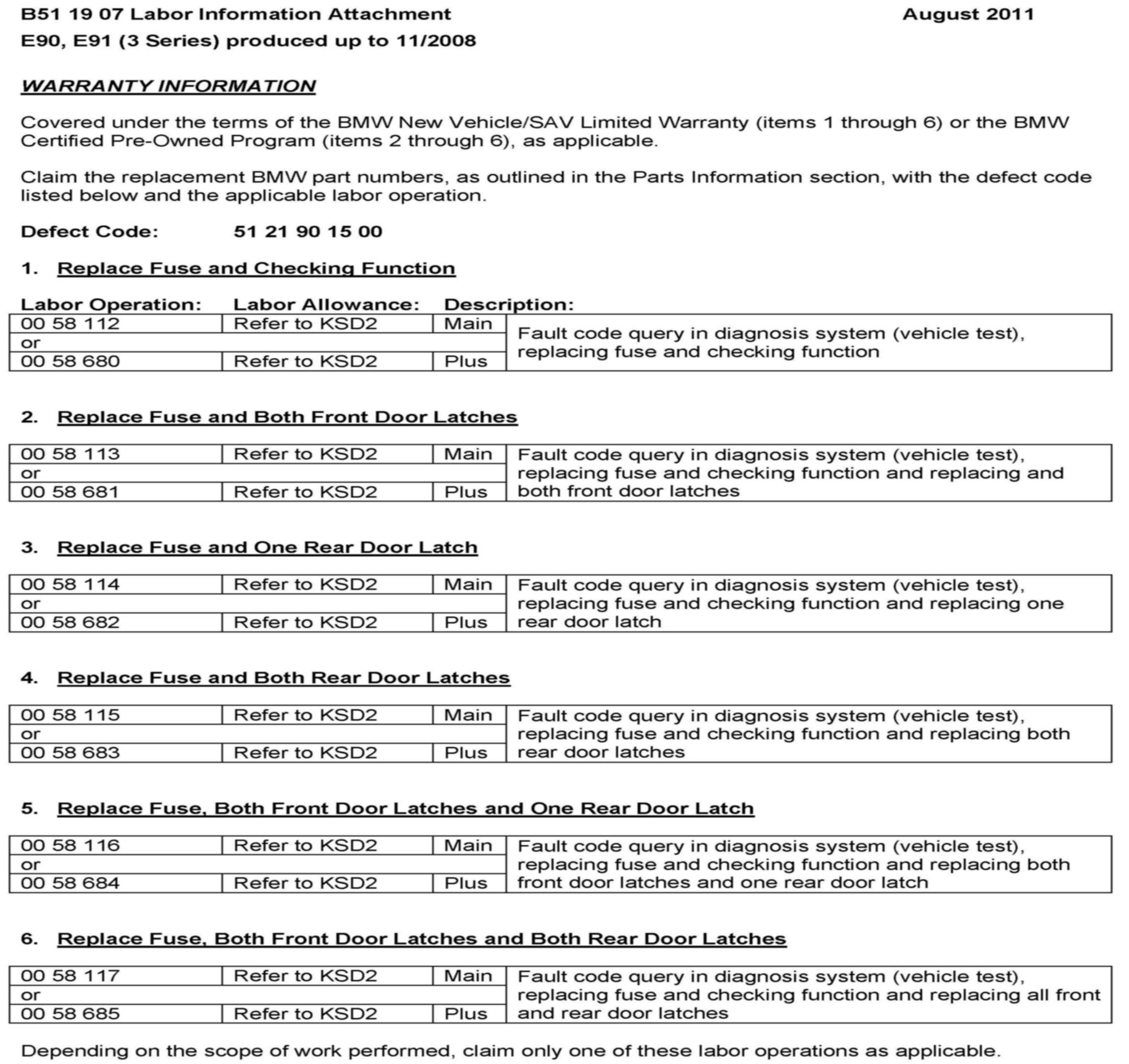 This Service Information bulletin supersedes SI B51 19 07 dated September 2009.