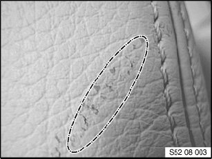 The fault pattern presents no product defect. The effected location can be repaired with the aid of the BMW leather repair kit.