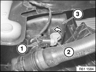 Turn coolant level switch (2) in direction of arrow and feed downwards out of coolant expansion tank (3).