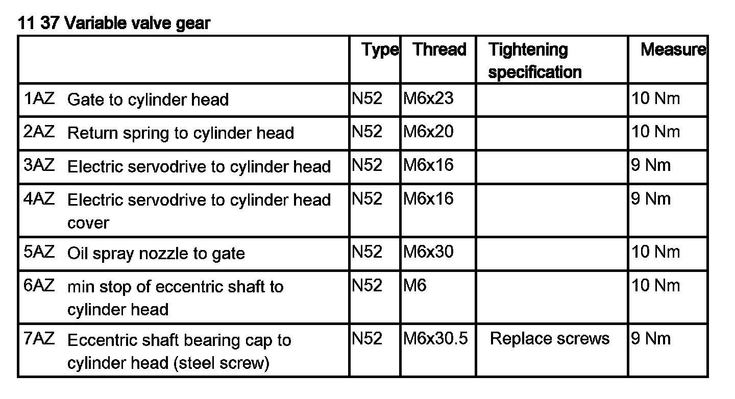 Tightening torque: 11 37 7AZ.