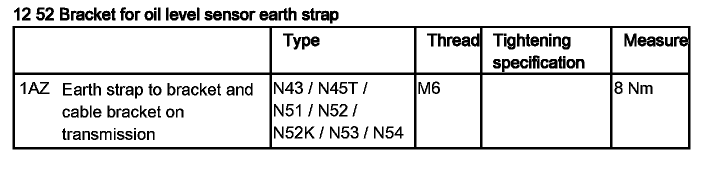 12 52 Bracket For Oil Level Sensor Earth Strap