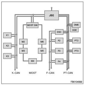 - Control unit with connection to K-CAN, PT-CAN and diagnosis lead
