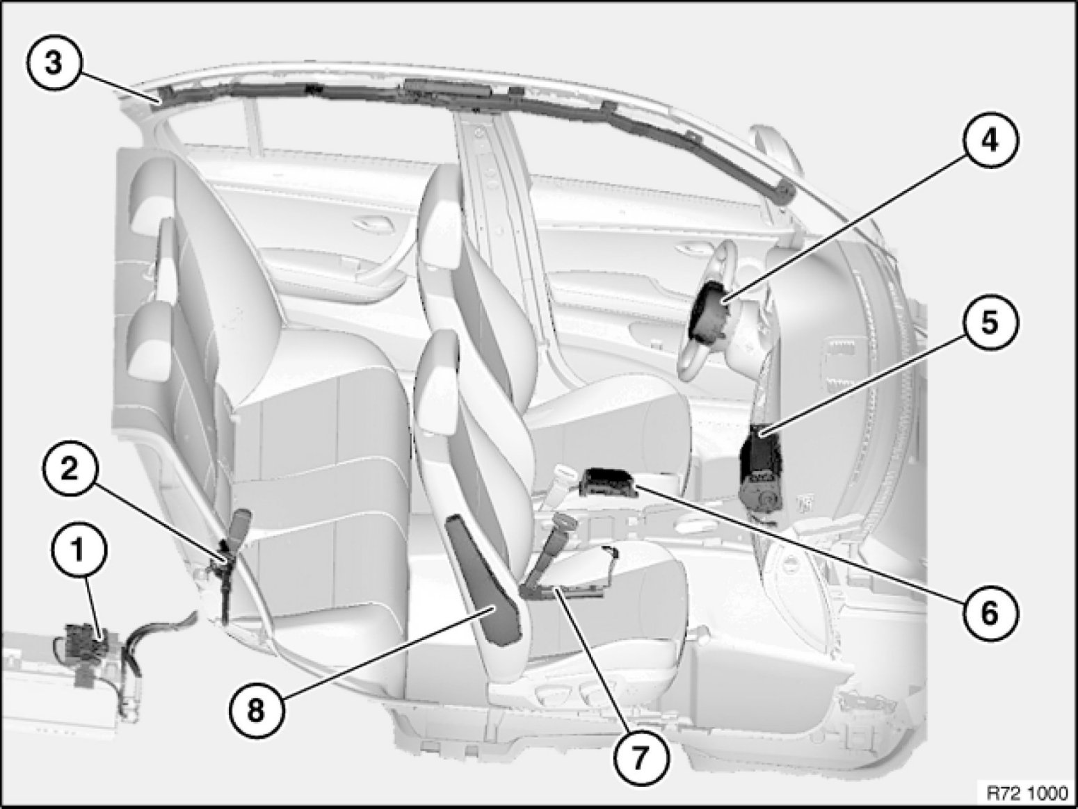 72 12 ... - Overview of airbag modules, airbag control unit, belt tensioners
