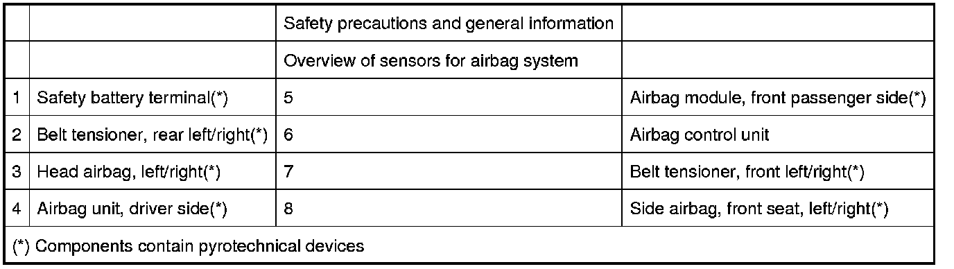Overview of Airbag Modules, Airbag Control Unit, Belt Tensioners