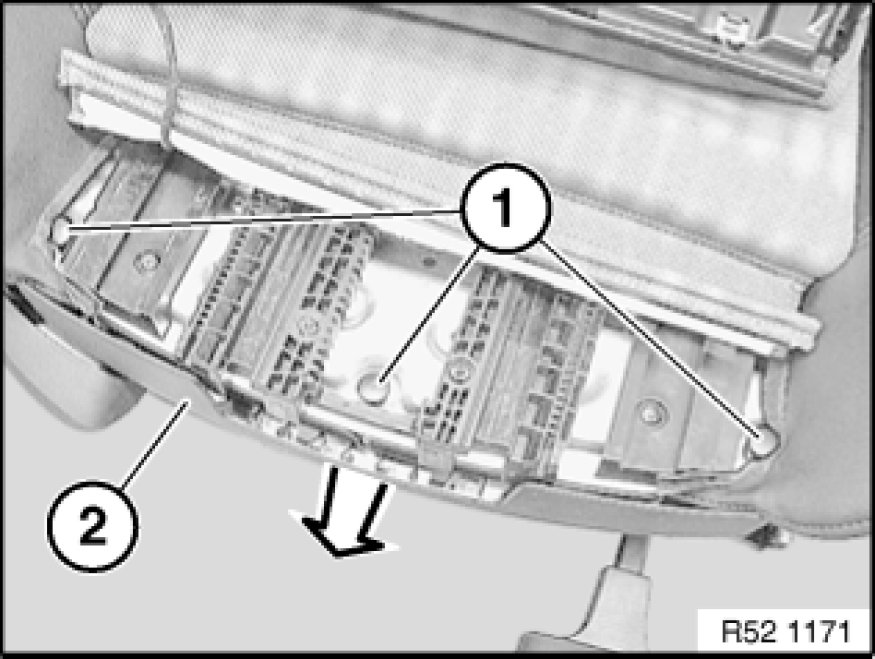 Remove seat trim (2) downwards.