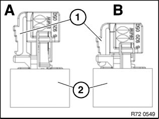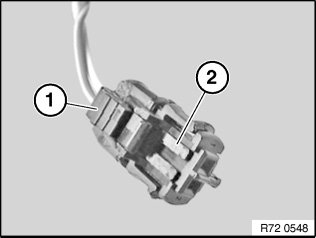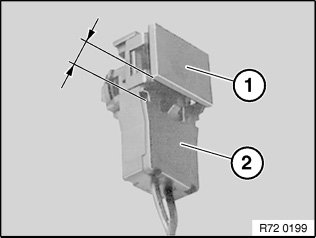 Only if the detent lug (2) is visible will the airbag plug connection gas generator/airbag module be correctly engaged.