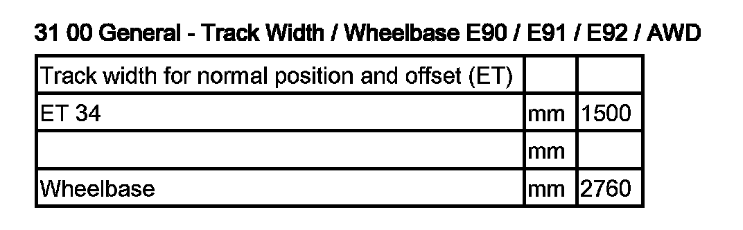 31 00 General - Track Width / Wheelbase E90, E91, E92 / AWD