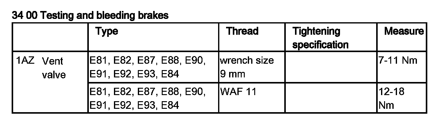 34 00 Testing and Bleeding Brakes Tightening Torques