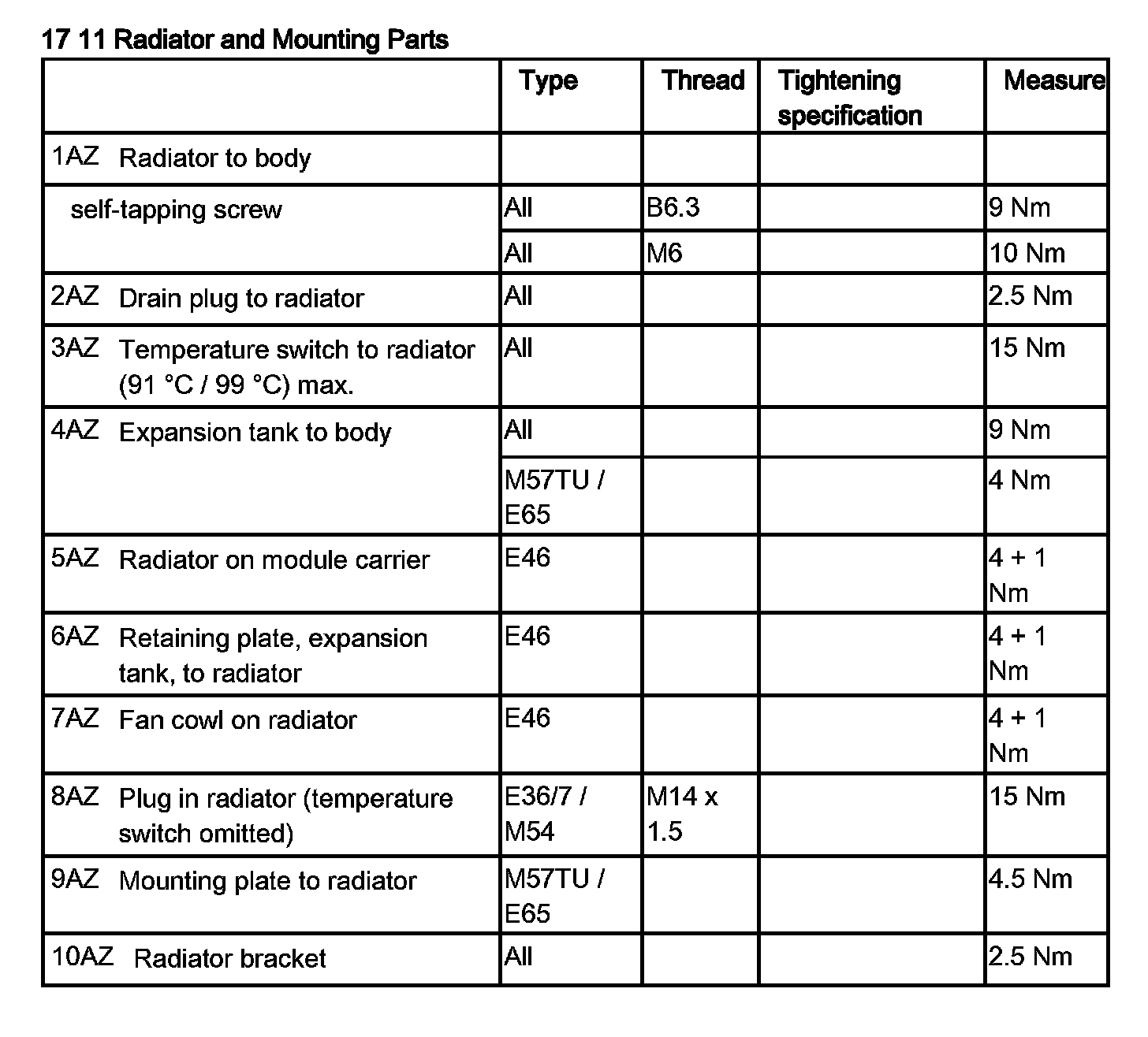 17 11 Radiator and Mounting Parts