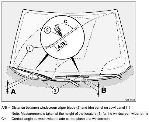 NOTE: Measurement is taken at the height of the locators (3) for the windscreen wiper arms