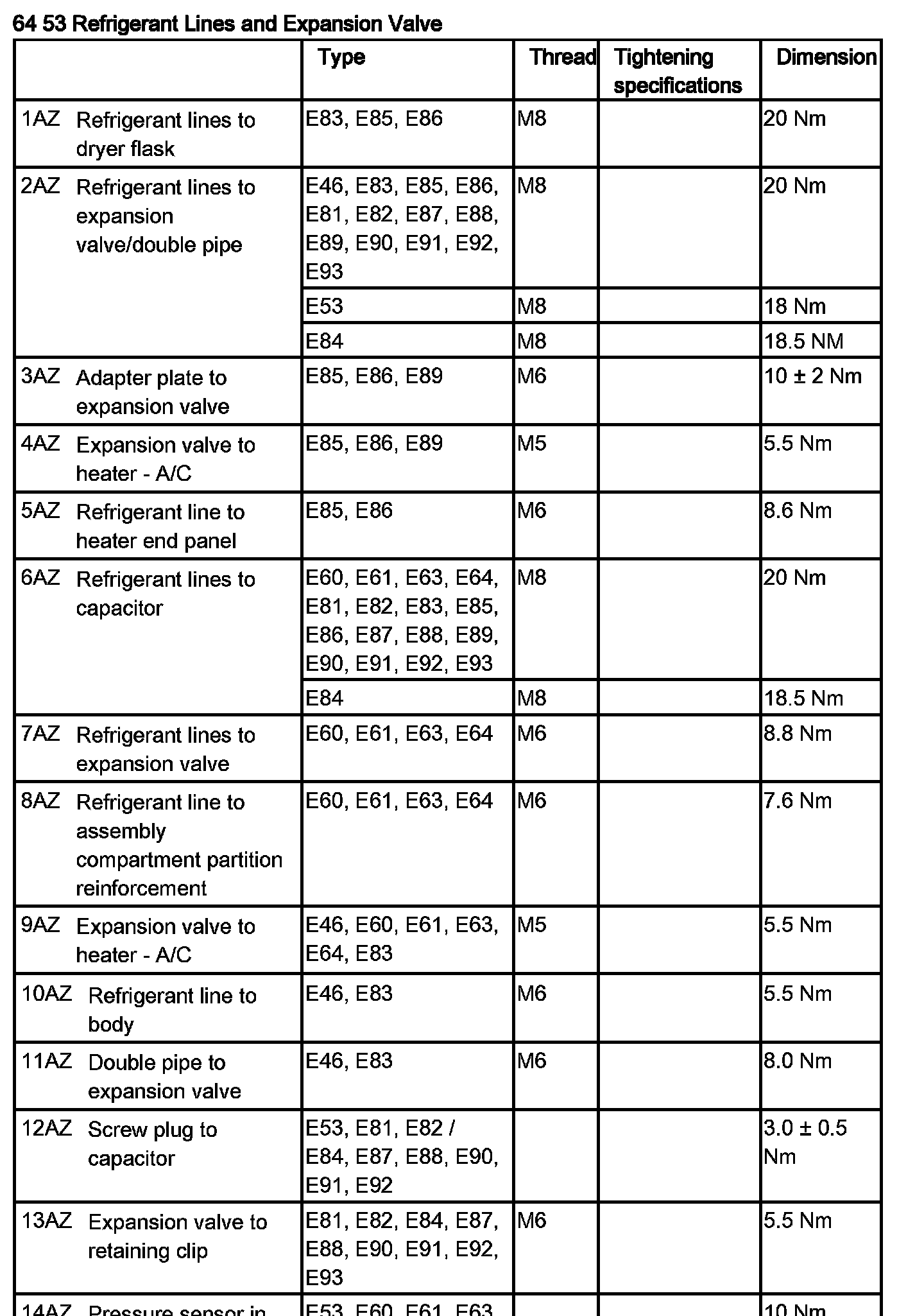 Tightening torque 64 53 6AZ.
