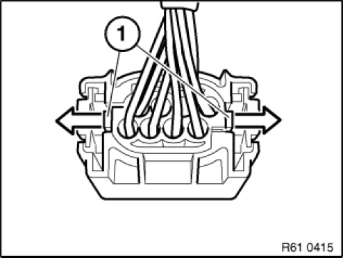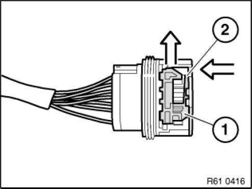 Press down arrester hook (1) with screwdriver and pull out cable with contact towards rear.