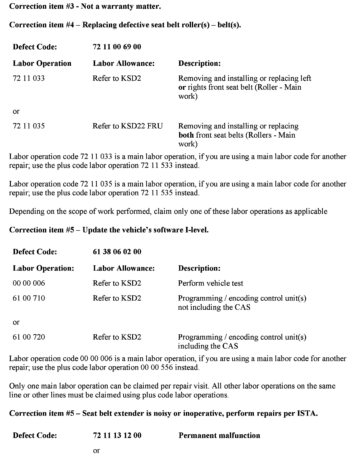 SI B72 01 11Safety Belts and Accessories (Body)