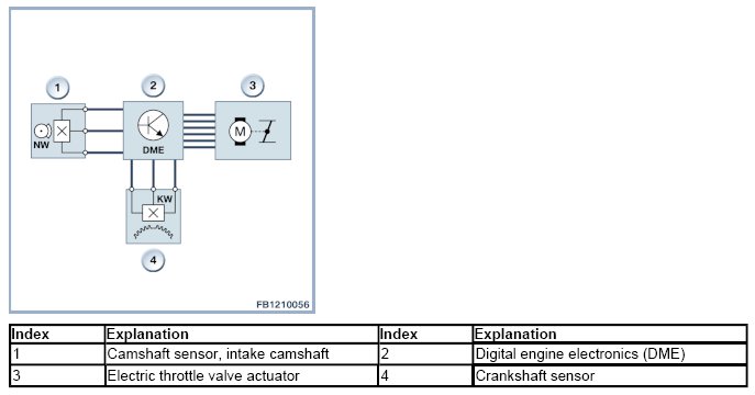 The Digital Motor Electronics (DME) uses the actual position measured to convert the required throttle valve opening setpoint into a signal.