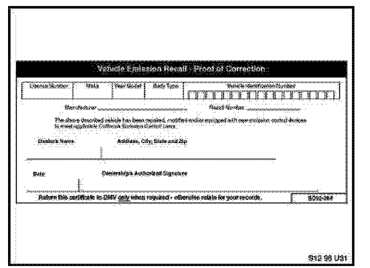 For California centers only: It is required by the California Code of Regulations that an executed orange "Vehicle Emission Recall - Proof of Correction" certificate (SD92-084~ see illustration) be provided to each customer (for vehicles registered in the state of California)~ once the Recall on his or her vehicle has been completed.