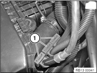 Release clamp (1) and detach air intake hose.