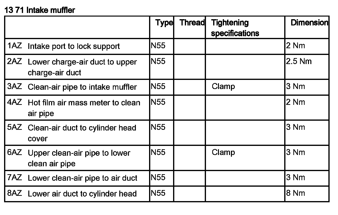Tightening torque 13 71 2AZ.