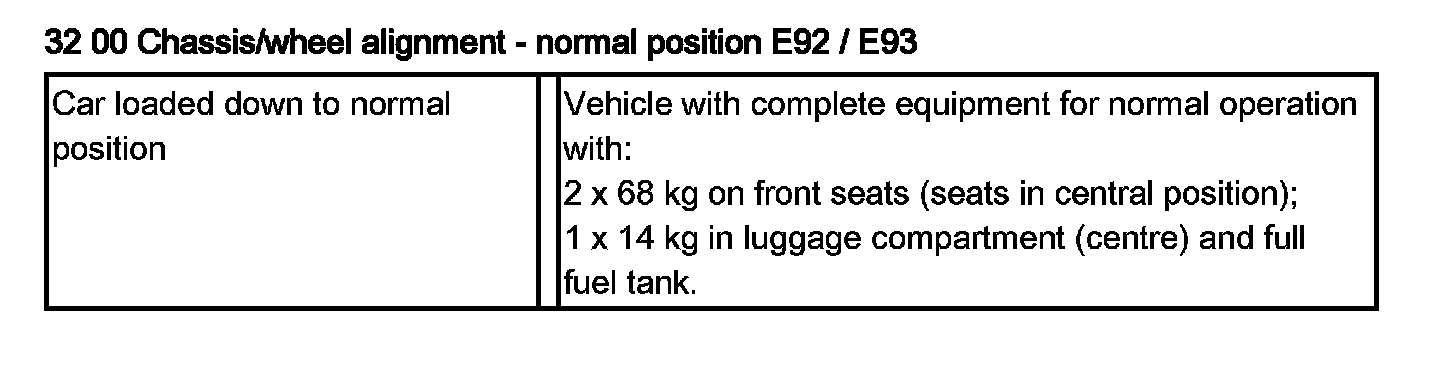 32 00 Chassis/Wheel Alignment - Normal Position E92, E93