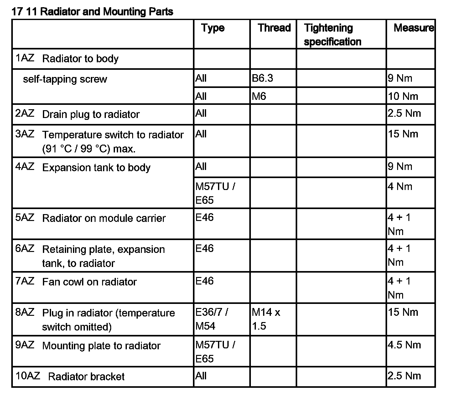 17 11 Radiator and Mounting Parts