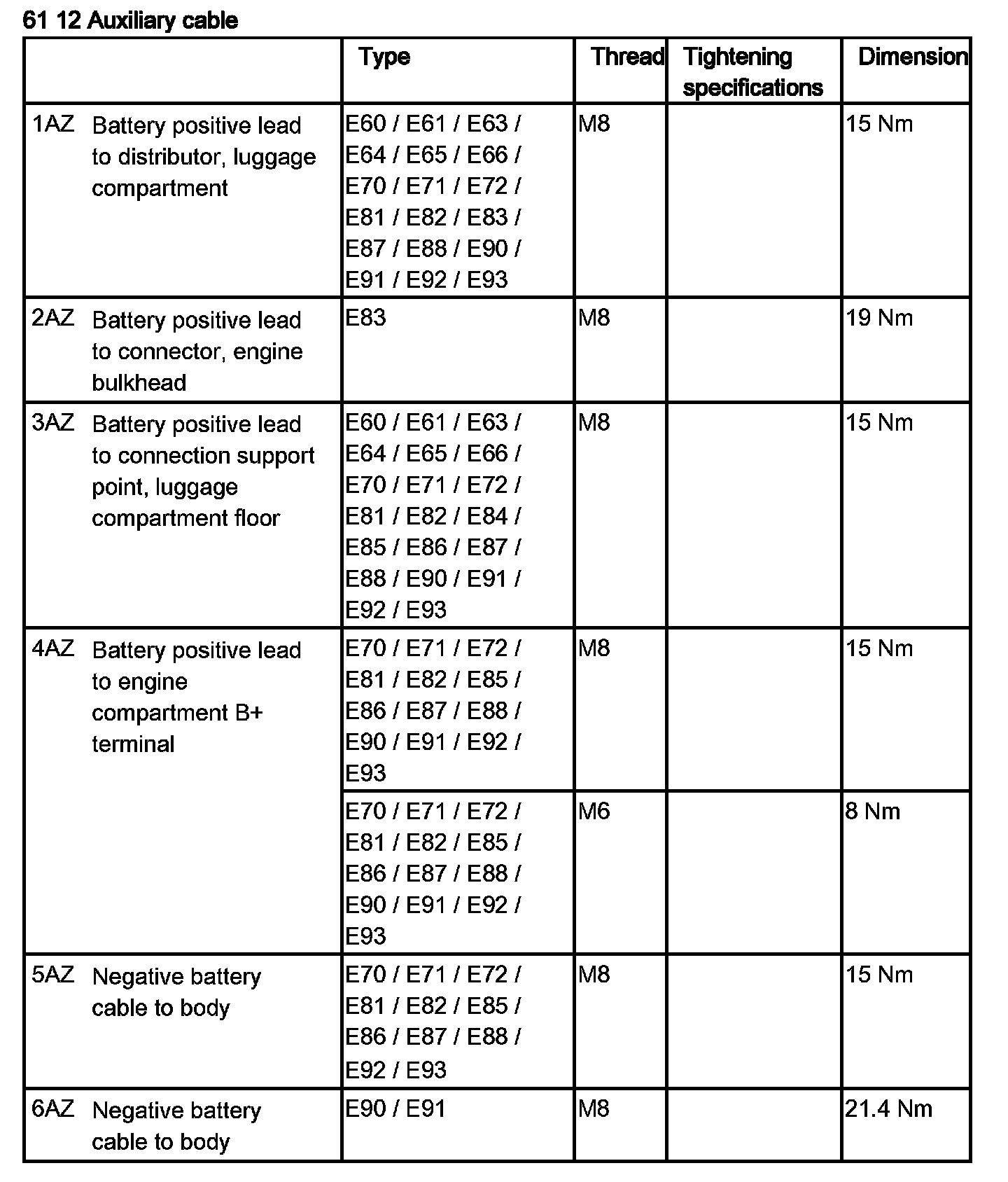 Battery Cable: Specifications