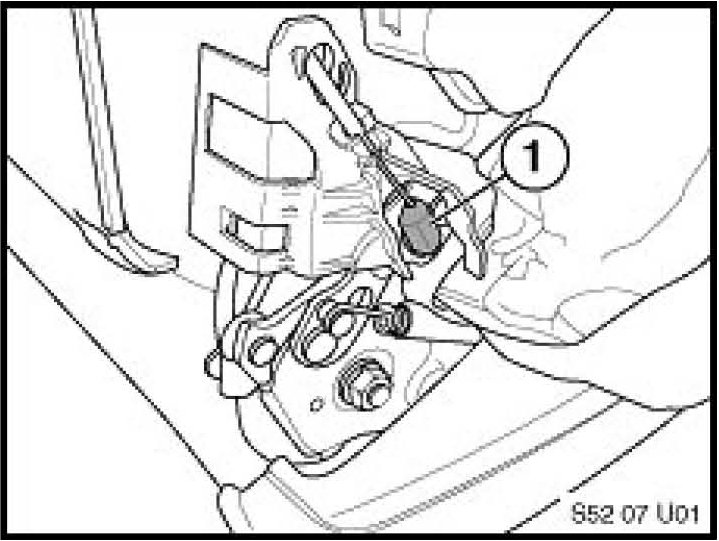 2. Reattach the Bowden cable (1) to the release mechanism.