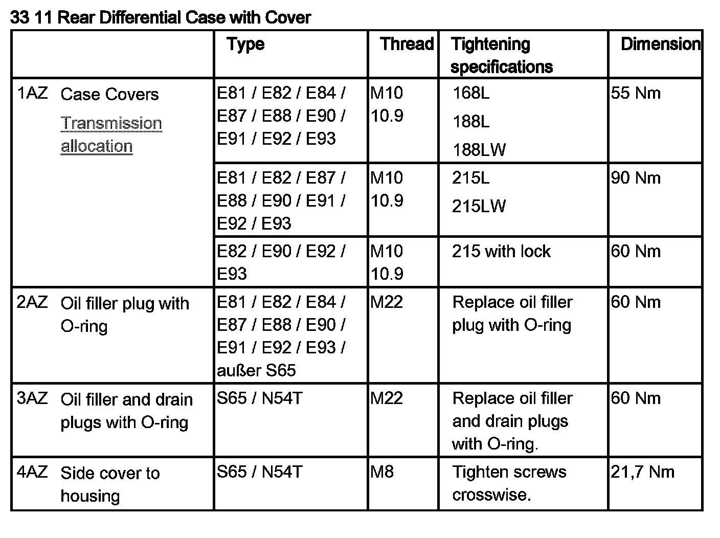 Tightening torque 33 11 2AZ .