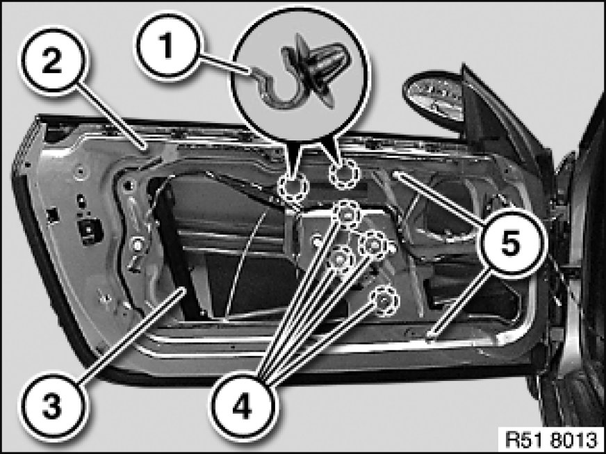 51 33 000 - Removing and installing (replacing) power window unit in left or right front door