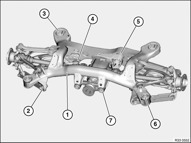 33 31 ... Overview of rear axle carrier with rubber mounts