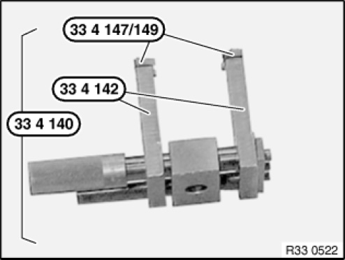 If necessary assemble special tools 33 4 140 , 33 4 142 and 33 4 147 as illustrated.