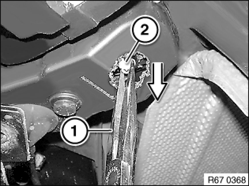 Using a suitable tool (1), pull locking pin (2) in direction of arrow out of gear unit.