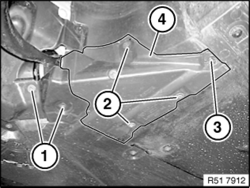 Release screws (1) on assembly underside protection at front.