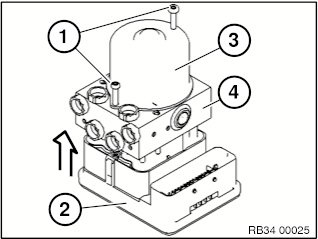 * When installing the hydraulic unit, only remove retaining tab (4) and screw plug (5) directly before connecting the brake lines.