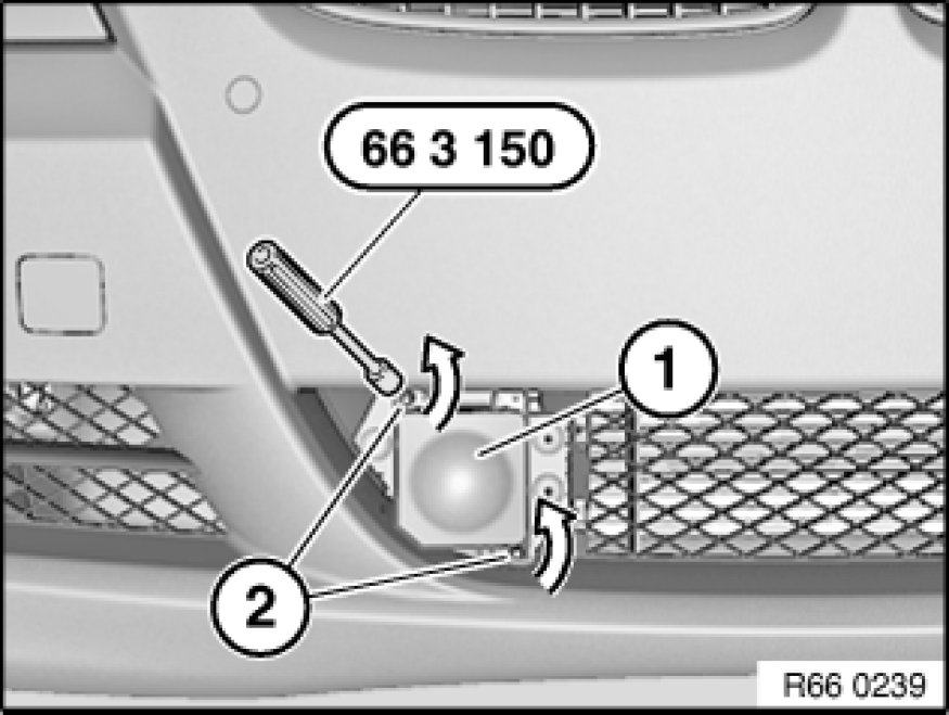 Insert adjusting screws (2) with special tool 66 3 150 66 3 150 Socket Wrench for ACC Sensor 2 max. four turns in counterclockwise direction.
