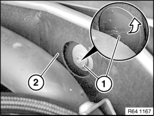 Make sure condensate drain (1) is correctly seated in grommet (2).