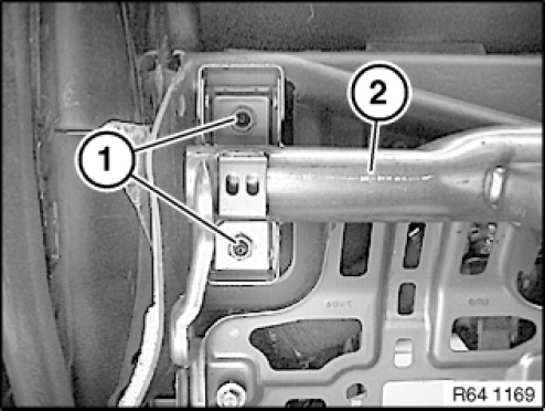 Release nuts (1) on right on support tube (2).
