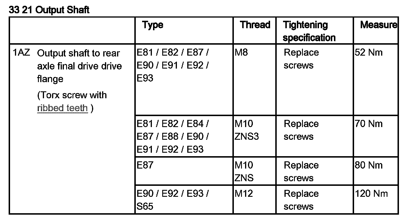 Tightening torque 51 71 4AZ.