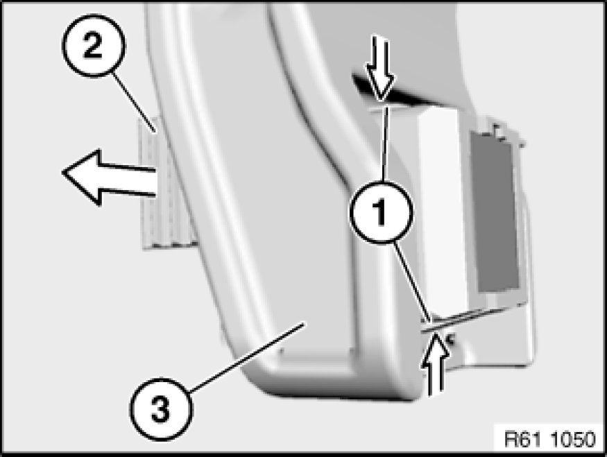 Press catches (1) together and unclip brake light switch holder (2) from bearing block (3).
