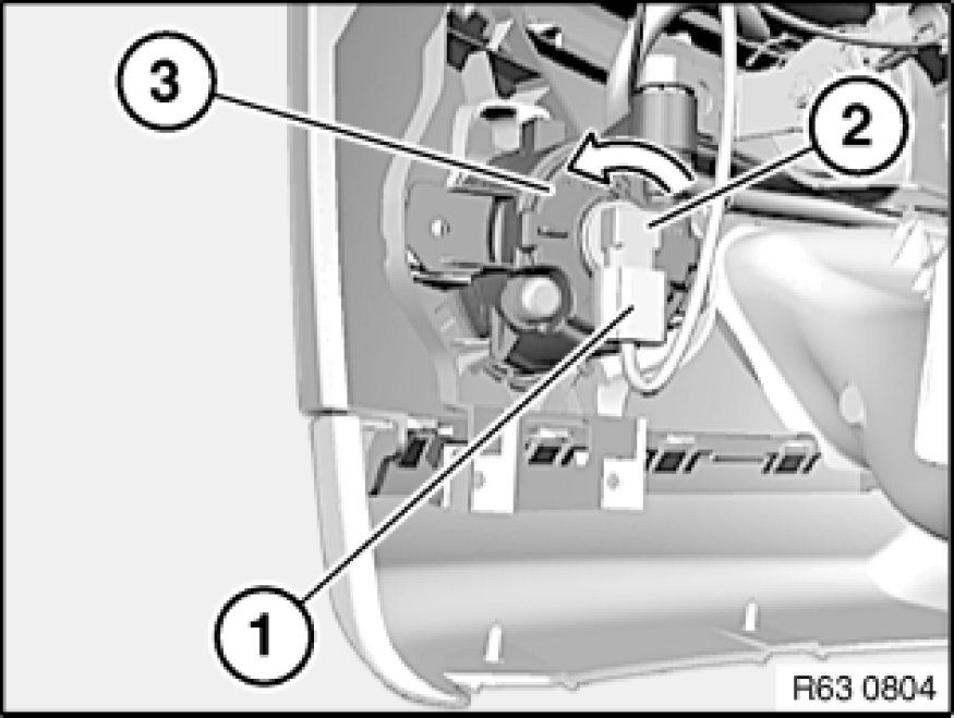 Turn bulb holder (2) in direction of arrow and remove from fog lamp (3).